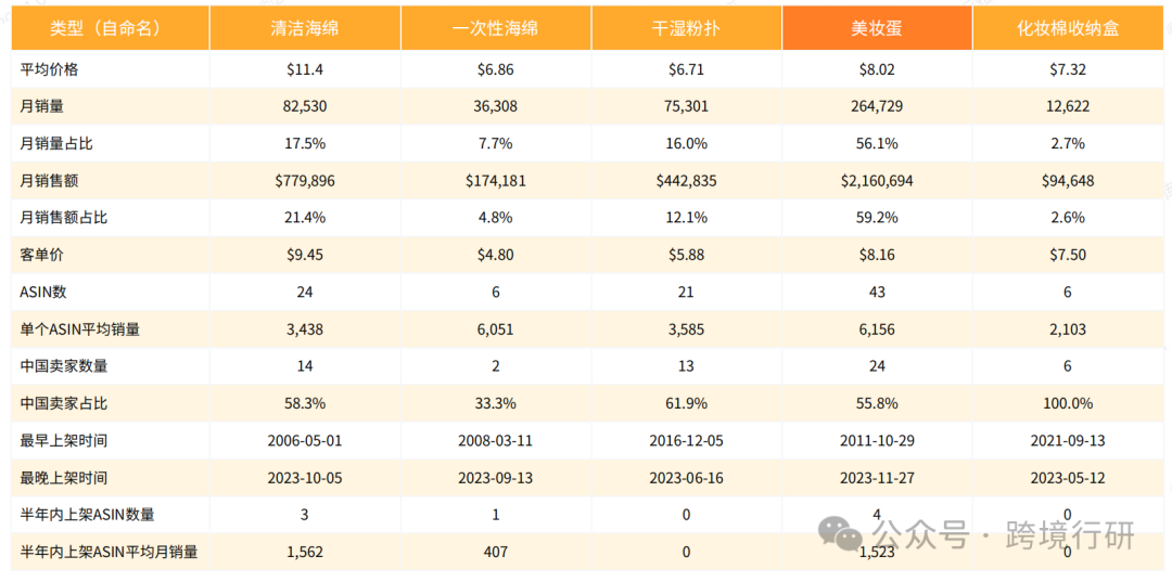 2023年美妆海绵年销售额接近4090万美,年销量约483万件,销量同比上升约42.34%。