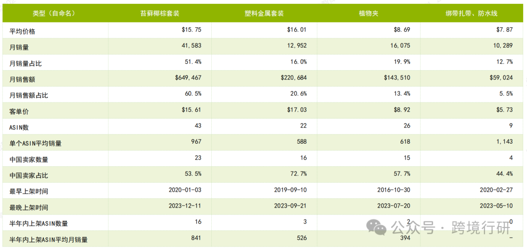 Plant Cages&supports 市场体量不大,新品数量占比高,推广营销周期不长,适合上半年的产品布局,类目还有一定的增长空间,可结合消费者画像、场景分析,进行产品研发和迭代。