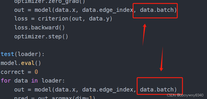 在使用 PyTorch Geometric 的 时,每次加载一批图时会自动生成 参数。例如,代码中的 和 会将多个图放入一个批次,并自动生成 参数。