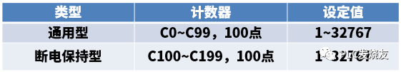 需注意一点,不同型号的plc定时器的范围都是不同的,以下表格是FX3U型号的plc的计数器的范围: