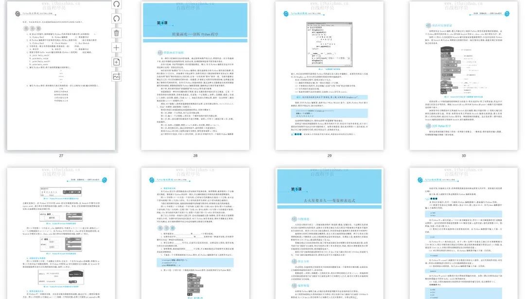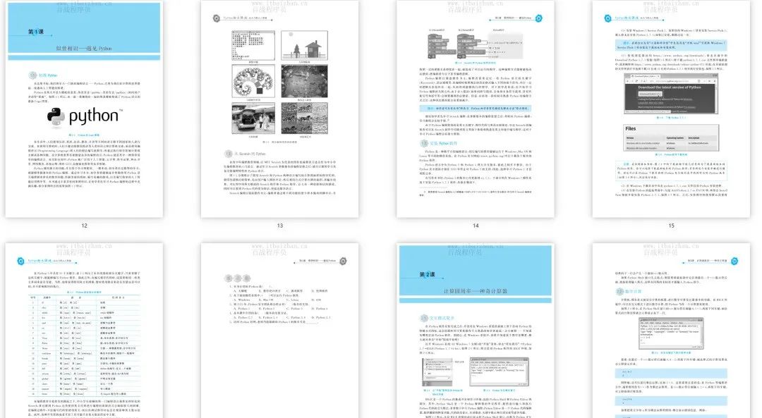 零基础 Python 语言编程入门教材,分为程序设计、数学编程、海龟编程等 3 个单元。单元讲授变量、数据类型、数学运算、字符串、列表、函数和对象,讲授使用流程图来描述算法,还讲授使用顺序、选择和循环等基本的程序结构编写 Python 程序;第 2 单元讲授使用枚举、递推、模拟等方法编程解决方程、逻辑推理等数学问题;第 3 单元讲授使用海龟绘图功能进行创意绘图和制作趣味游戏。