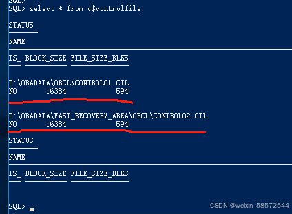 SQL> select * from v$controlfile;