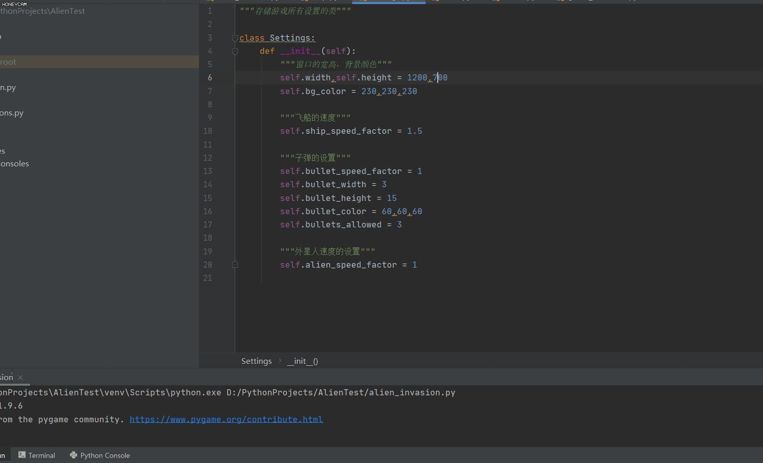 首先在settings.py中添加一个控制外星人速度的设置。