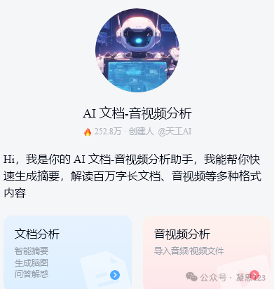 例如:AI文档——音视频分析,可以自动总结视频内容。