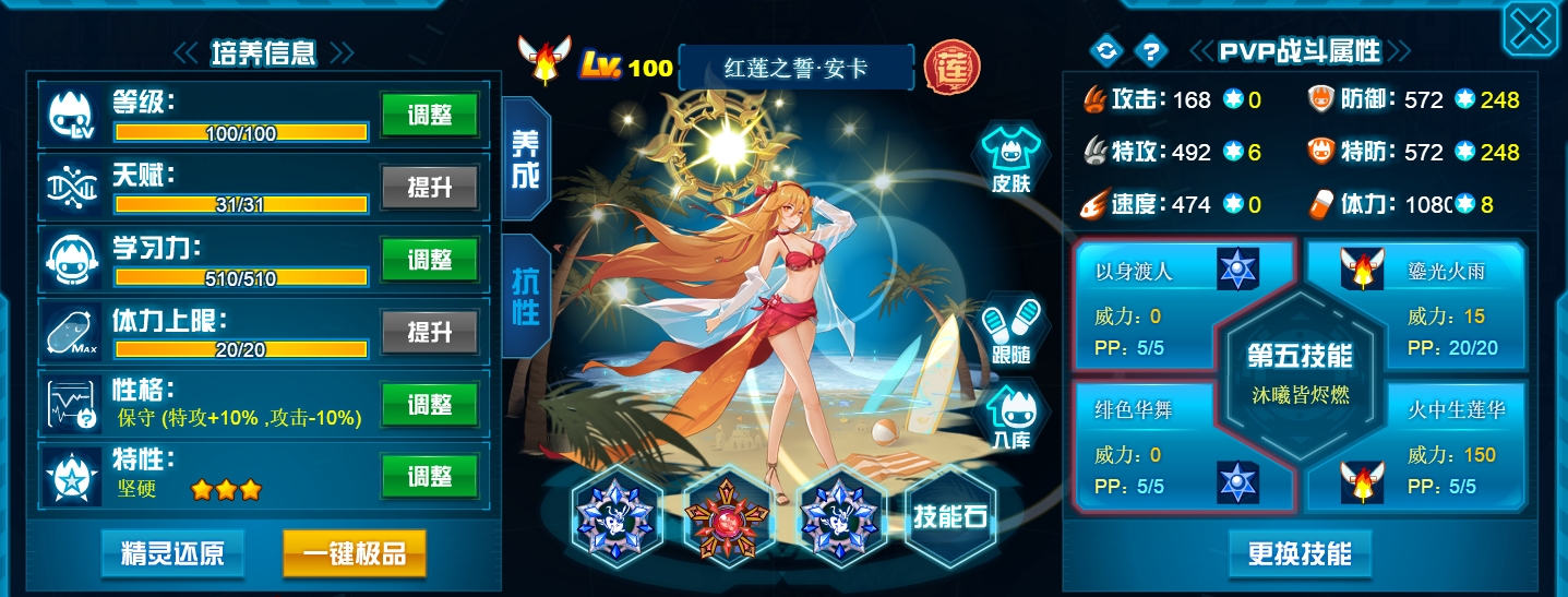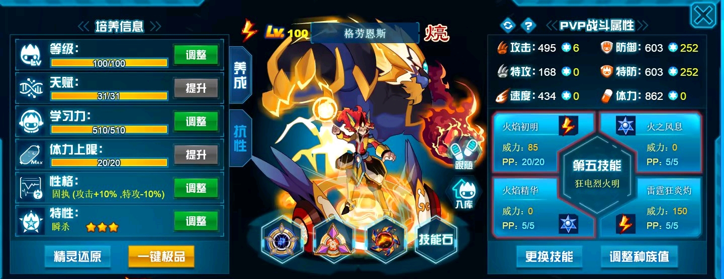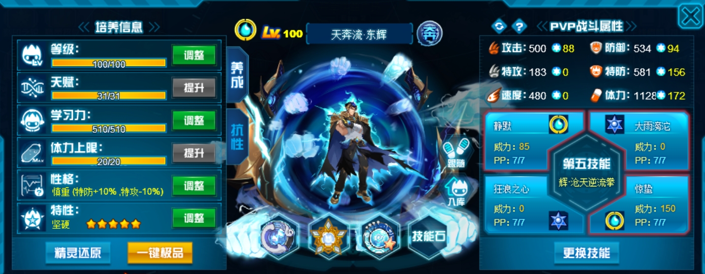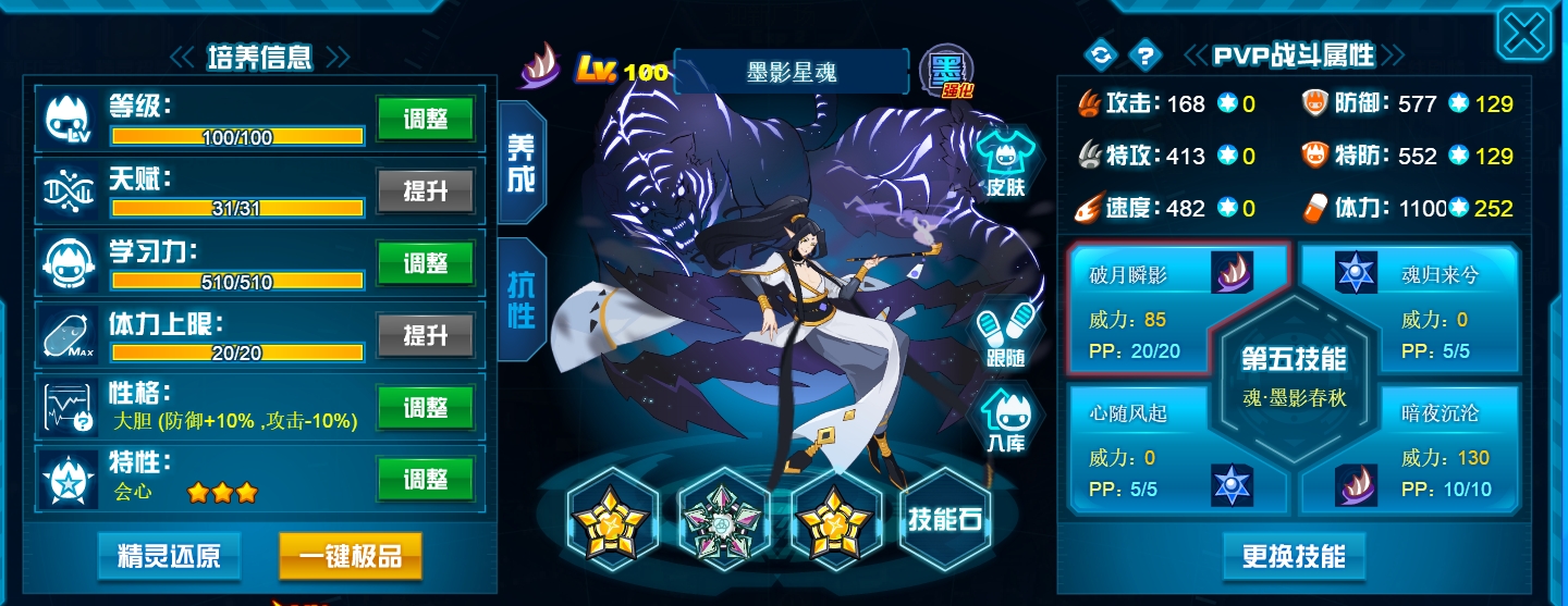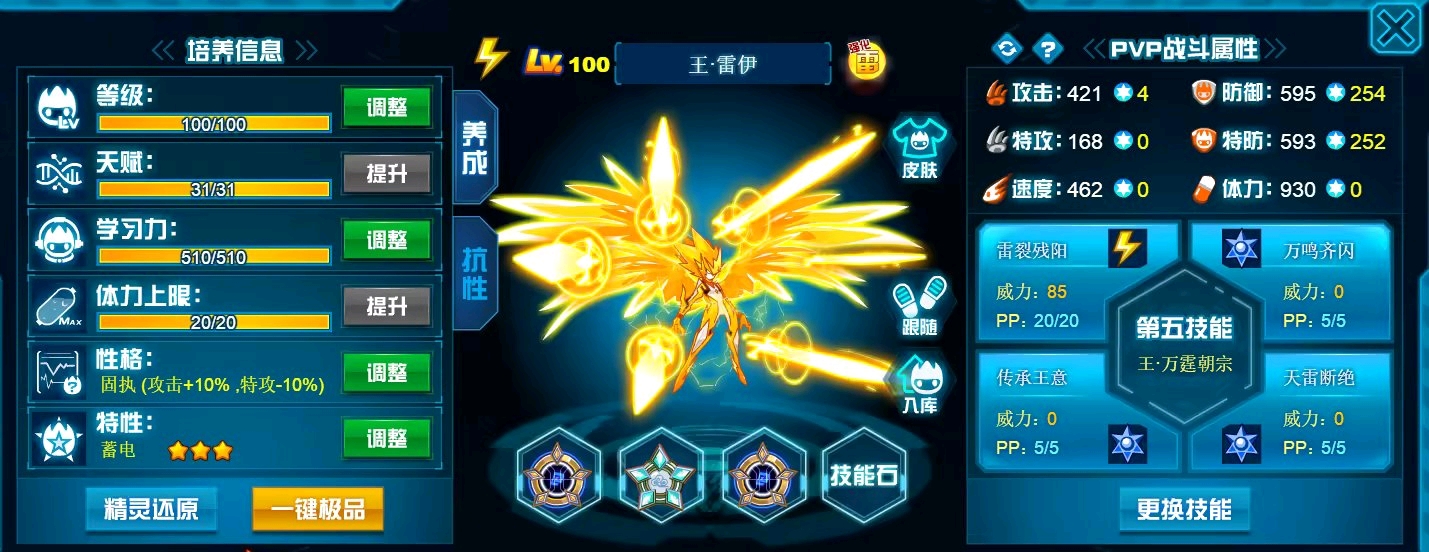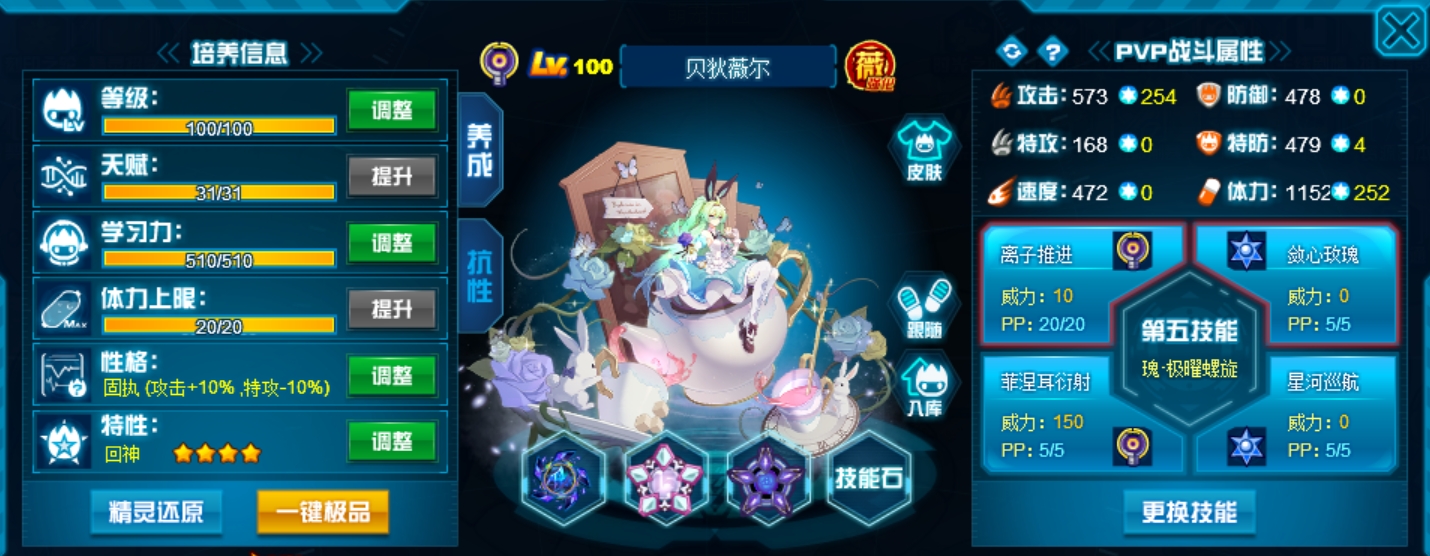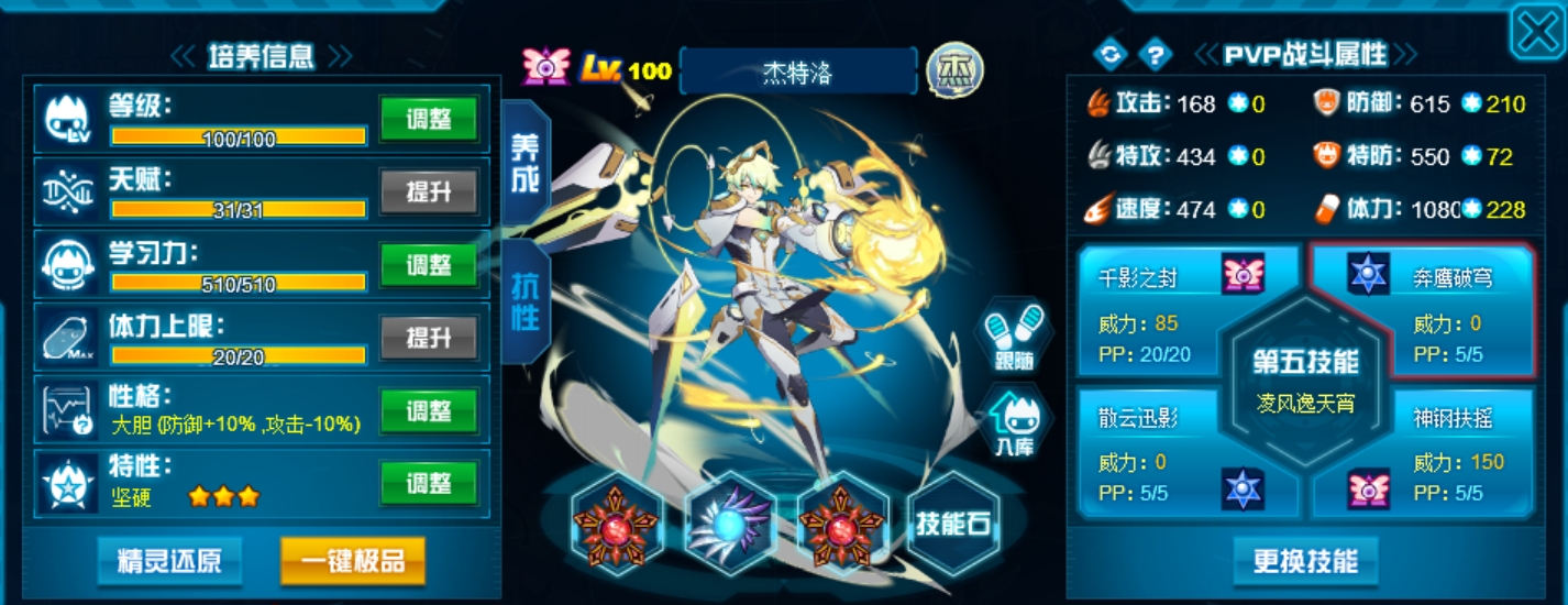 这个学习力其实是我PVE用的为了扛那些BOSS,懒得换了而已,反正盾体刷法PVP也不算差,刚好盾体刷法也可以搭配皇御中切有的时候可以做到皇御+魂印两段粉,对某些续航差的精灵来说也很疼。常规情况下直接选择攻体也是没有问题的。然后谱尼因为这个强大的消回合机制,其实并不是特别依赖极限高体,所以我就不放笑傲图了。