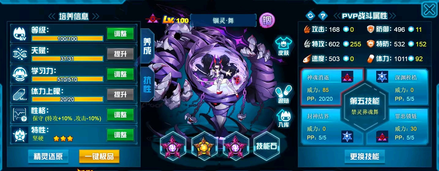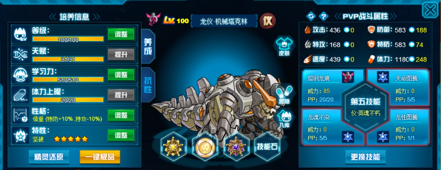 当然,其实坚硬特性然后刷攻体效果更好,可以兼顾双防,我留了精神是因为当初没有重组药了(哭)。