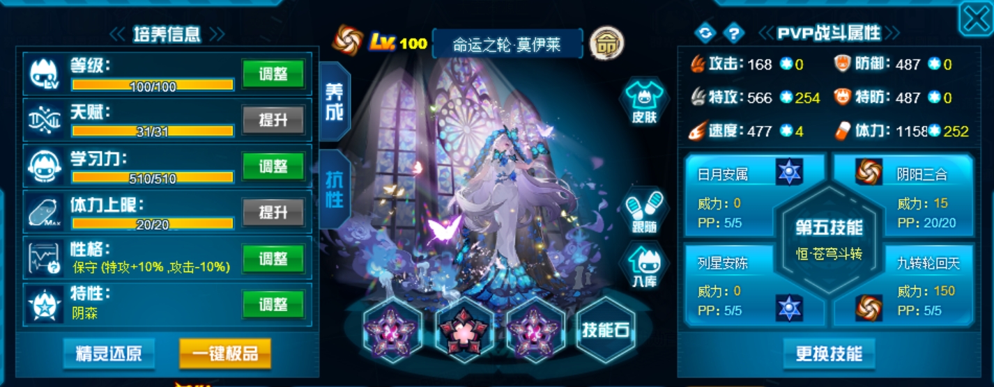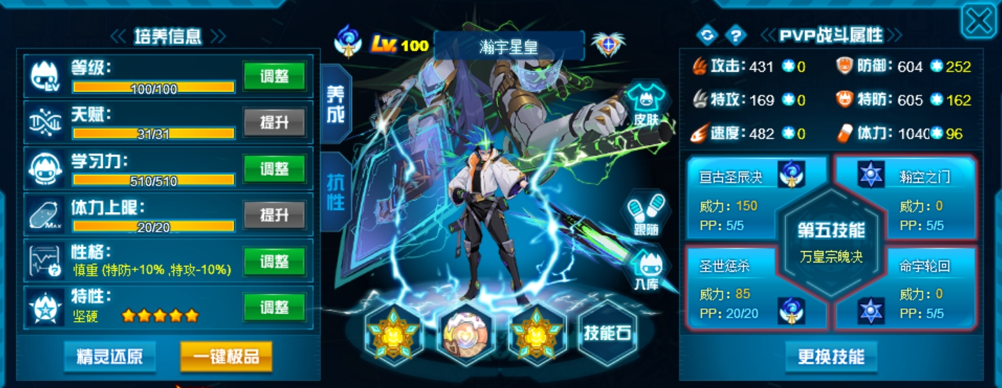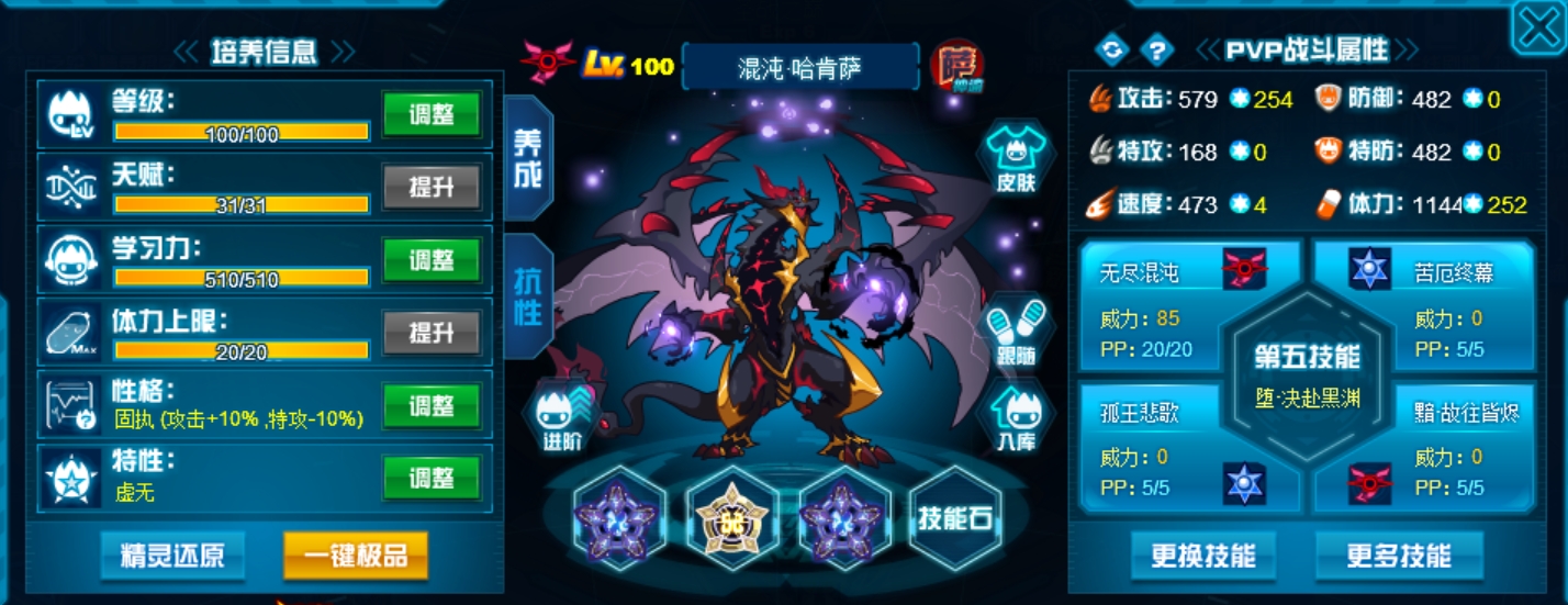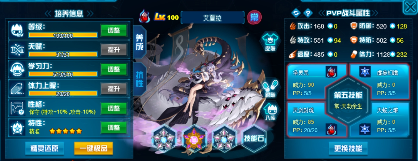 两个攻击技能全部带老的,稳定,新的不必中并且命中率堪忧。抗性选55疲惫全方位针对星皇。