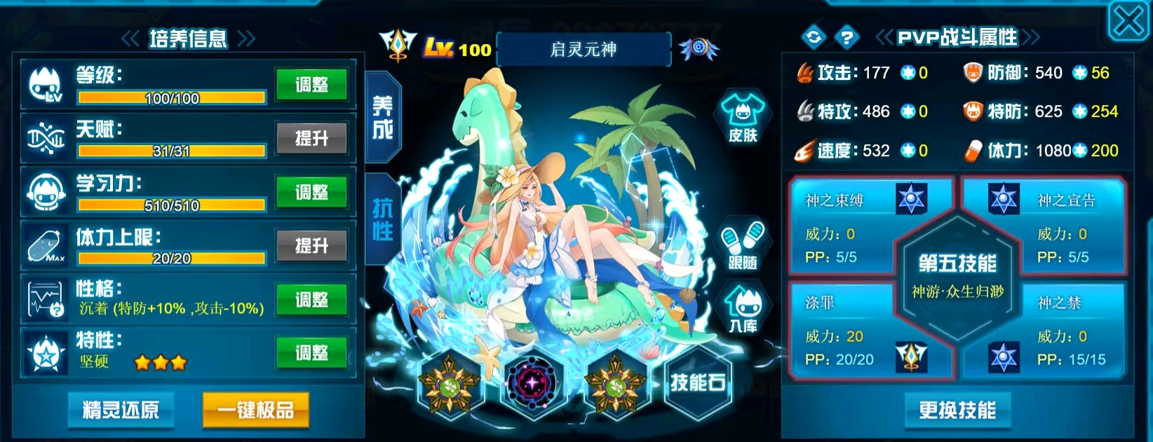 盾体元神可以考虑舍弃真神信仰靠神游·浩渺星河来拿未击败先制提升主动性,也可以带神之禁进一步打消耗,这个技能很克制妤玫。(说实话多少人没注意过元神的其他技能)