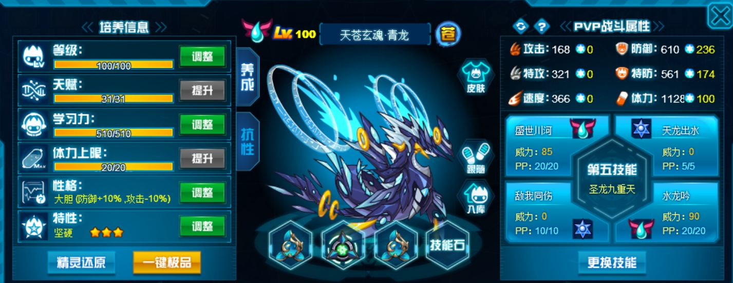刷法我选了盾体刷法,兼顾双防,反正青龙的体力种族高得离谱,不刷满体力也能高过很多精灵。对青龙而言其实三角偃月的树枝更高,因为他的输出只跟体力挂钩,并且需要扛伤,然后不吃特攻不吃速度并且后手优势。