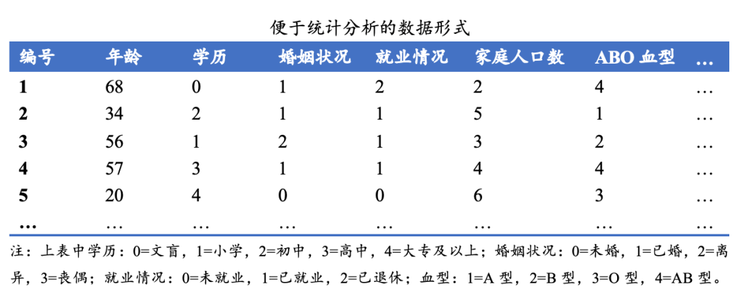 条件变量是什么(条件变量是什么变量)大家在学习统计时 可能会过于重视分析方法的使用 而忽略了数据收集和整理的重要性 一般而言 统计分析最重要的一步实际上是先将数据整理形成便于分析的数据形式 比如下表 nbsp 上表中虽然全是数字 但却可以回答很多问题 比如 每个人的年龄多大 是什么学历 婚姻状况如何 就业情况如何 家里有几口人 nbsp 这些问题的答案都是我们所调查对象的一系列特征或属性 统计学上称为变量 variable 也就是上表顶行各条目的名称 初学统计学一定要训练自己学会利用 变量 来表达