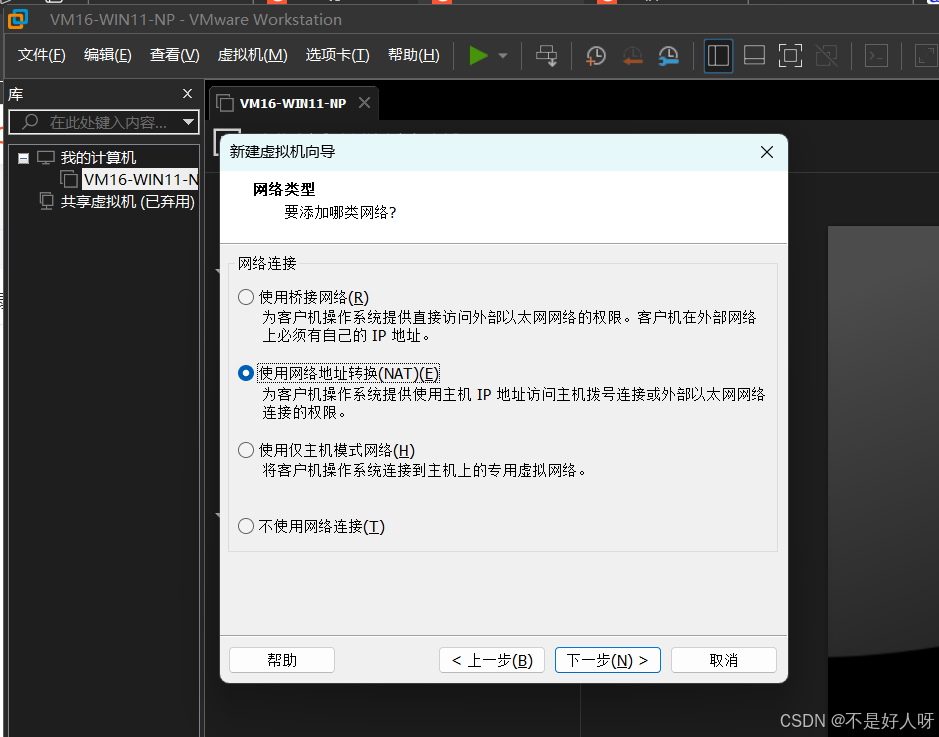 7.网络类型选择(这里通常选NAT模式,有的电脑桥接没网络,反正就一句话,随便选,进去没网络,就桥接改NAT,NAT改桥接,完美解决)