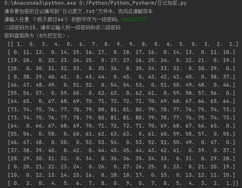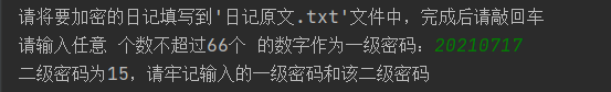注意:“日记原文.txt”和该程序文件“日记加密.py”要放在同一个文件夹中