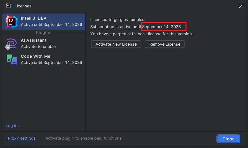 3、激活成功教程IDEA