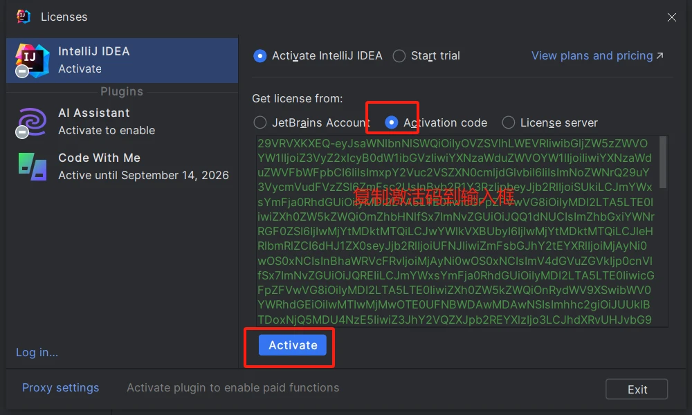 打开IDEA,再下面的弹框中输入激活码即可。激活码再上一步下载的激活成功教程包里面。