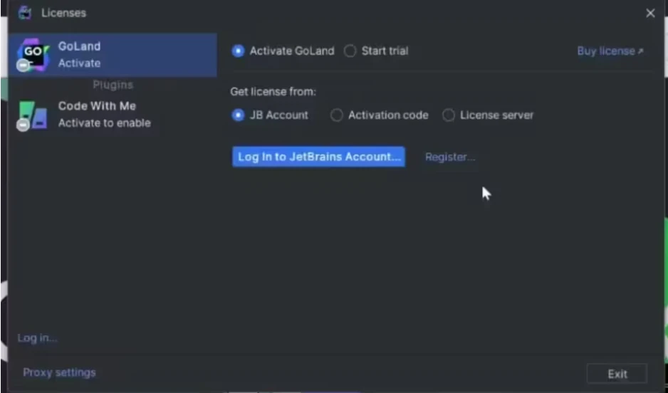 安装完成后,打开 GoLand 会出现这个界面,提示激活。