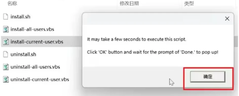 4.执行 install-all-users.vbs ,和上一步的操作一样,需要弹出两个弹框。