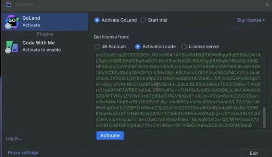 5.打开 GoLand,再将工具里提供的激活码,复制到 activate code 中,具体操作查看截图。