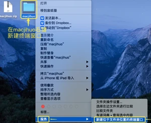 第三步:选中macjihuo文件夹右键,新建桌面终端