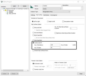 布谷鸟搜索方法可用于搜索SLOPE/W中的圆形滑移表面。这种搜索方法是定位临界滑移表面的无偏尝试。它有利于识别复杂地质和/或大型领域中的关键失效模式。这种搜索方法还可以识别需要额外分析的领域部分。
