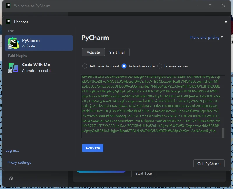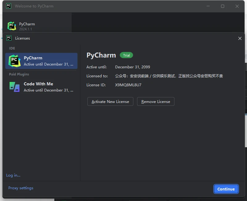 13.打开Pycharm,激活码放在一起的,全选复制粘贴,输入激活码即可
