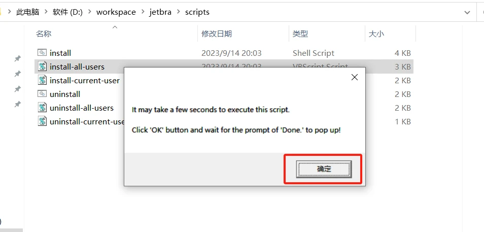 Windows 系统,点击运行 install-current-user.vbs 脚本,为当前用户安装破解补丁。
