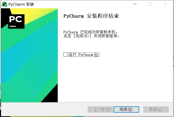 这里我们就算完成了第一步,安装好了 pycharm,然后点击【完成】,退出 PyCharm 软件即可。