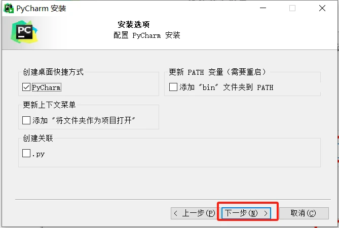 这里最好勾选创建桌面快捷方式,这边方便后续打开 Pycharm: