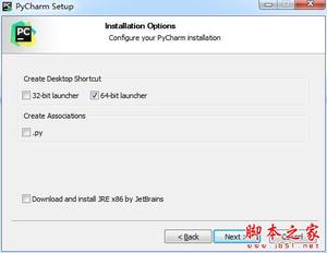 勾选创建pycharm 桌面快捷方式,小编选择64位,下面的是否关联文件格式自行选择