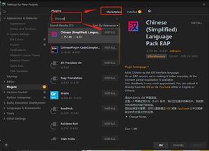 选择“marketplace”接着在输入框中输入“Chinese”后即可找到汉化插件,点击“install”进行下载