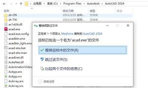 软件安装完成后将 acad.exe 文件,复制到 AutoCAD的安装路径下覆盖原文件即可将Autocad 2024 成功激活。