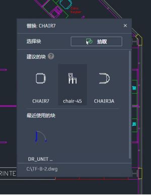 选择要替换的块参照时,产品会为您提供从中选择的类似建议块。