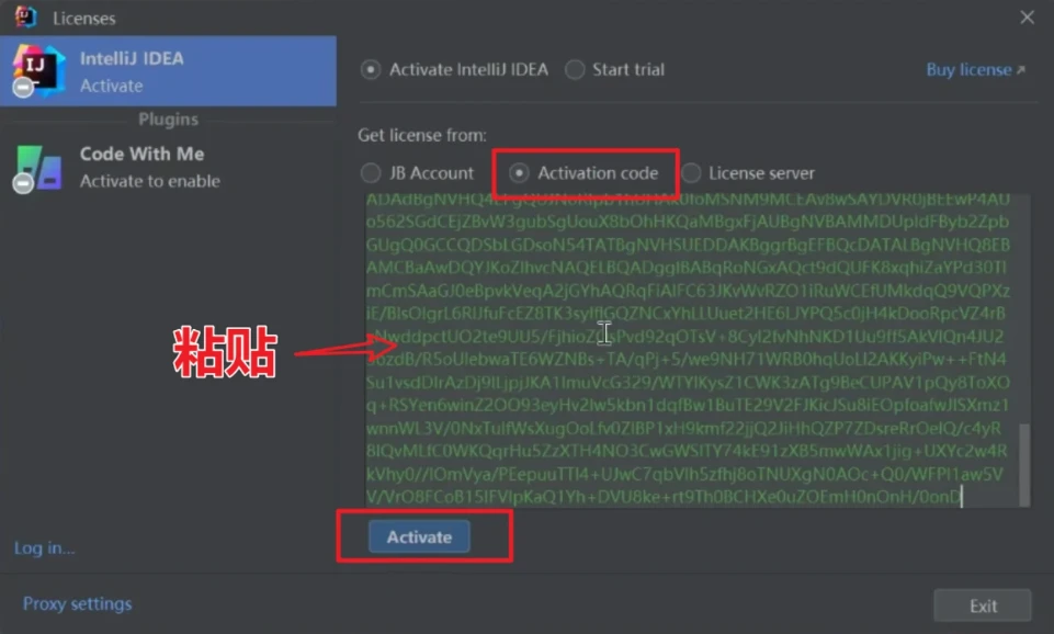 5.打开 idea,再将工具里提供的激活码,复制到 activate code 中,具体操作查看截图。