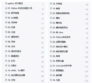 今天给大家分享一份《Python学习笔记》,这份文档包含35个知识点,如:类型、字符串、列表、组、语句语法、循环、模块等等,笔记将一个知识点的内容都统筹在一个章节里面,因此提炼性大大提高。