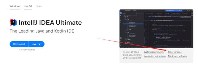- 在官网页面上,您会看到一个“other version”选项,选择它。