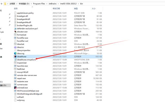 安装完成后,请打开IDEA的安装目录。您会在目录中找到一个名为“idea64.exe.vmoptions”的文件。