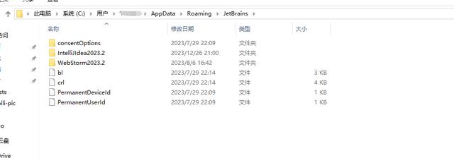- 在AppData文件夹下,查找JetBrains文件夹。